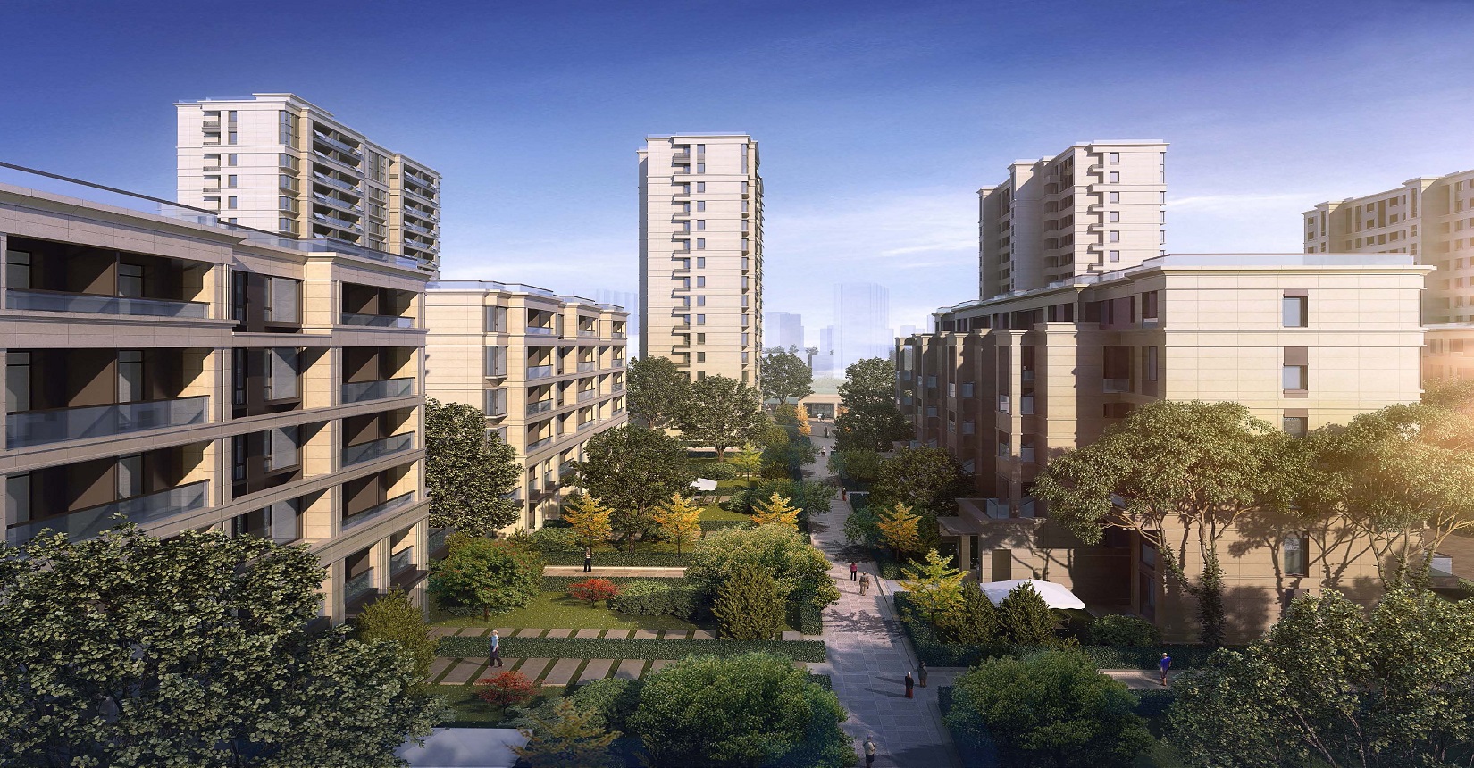 立面主體采用淺黃色真石漆,色調(diào)明快,不失品質(zhì)感。局部配合深咖啡色涂料,虛實(shí)對(duì)比強(qiáng)烈。高品質(zhì)玱璃欄板強(qiáng)調(diào)建筑的現(xiàn)代感,更具有公建化風(fēng)格?;捎妹S色石材,凸顯建筑的穩(wěn)重大氣。